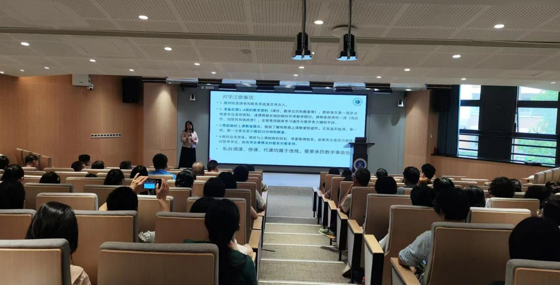 经理陈淑萍首先对新入职教师表示欢迎,并对上学期八项重点工作做回顾总结及新学期全院九项重点工作进行部署安排:
